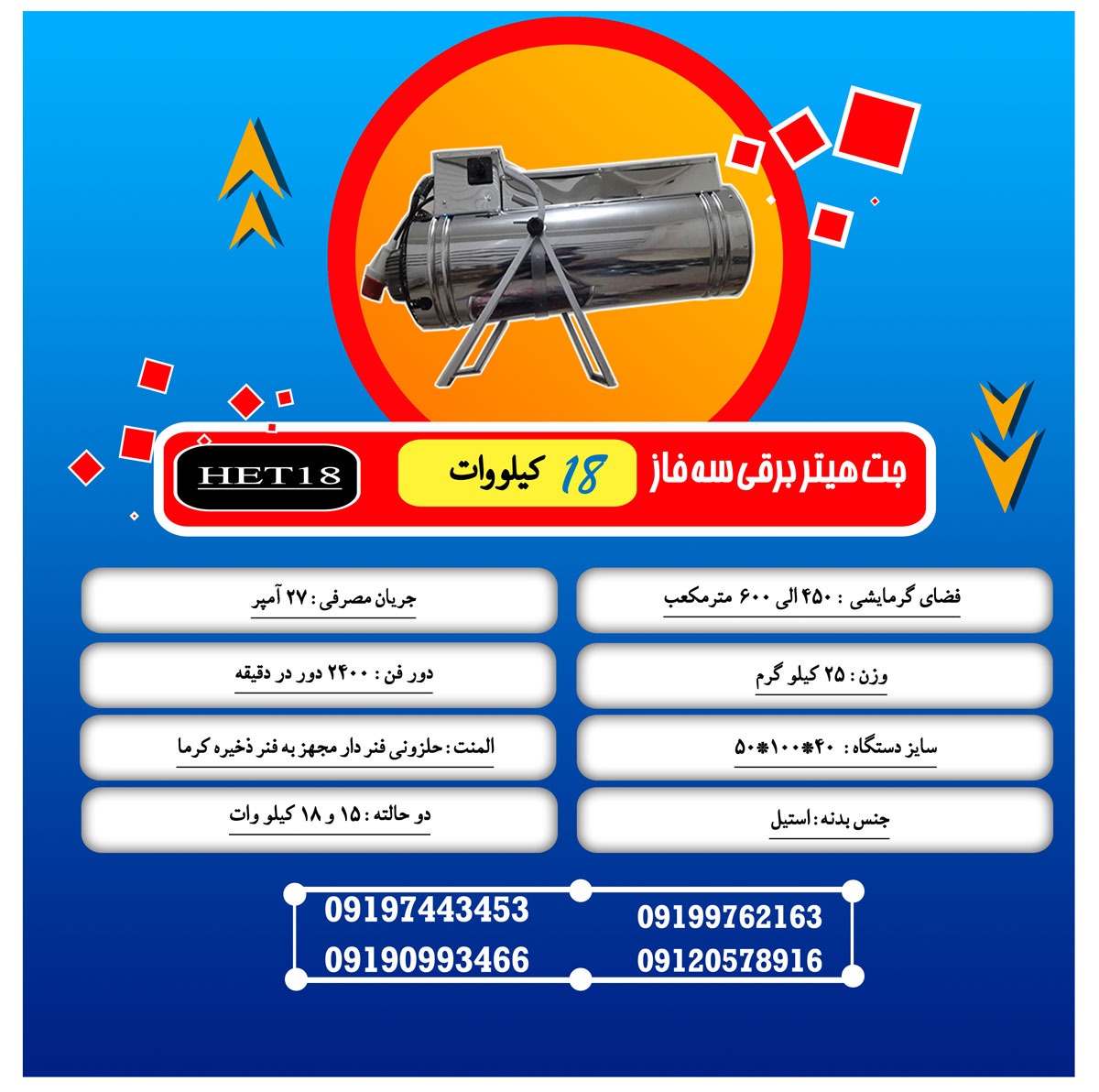 مشخصات فنی جت هیتر برقی سه فاز 18 کیلو وات