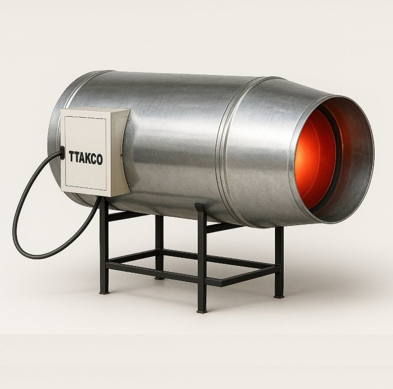 این قسمت از جت هیتر وظیفه‌ای حیاتی دارد: تزریق گرمای تولید شده توسط مشعل به کوره و هدایت آن به بیرون از فضای دستگاه. این فرآیند باعث می‌شود که هوای گرم با سرعت و به صورتی یکنواخت در محیط پخش شود و به شما امکان می‌دهد از گرمای دلپذیر و مؤثری در فضاهای باز یا بزرگ بهره‌مند شوید.