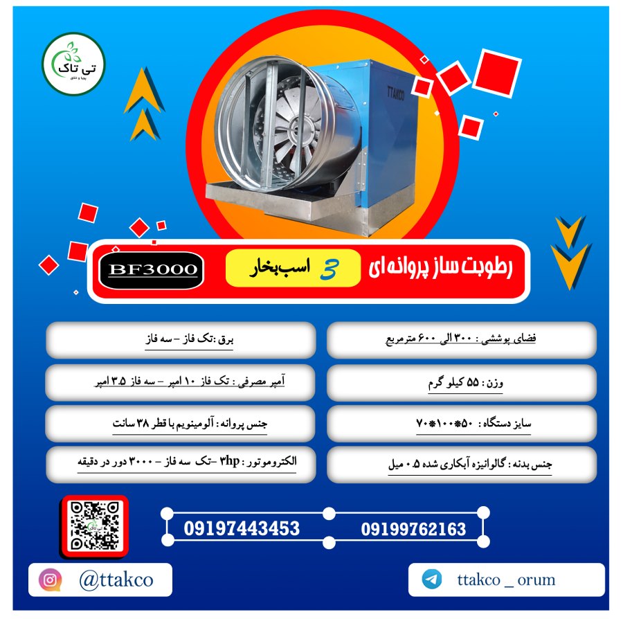 3- مشخصات فنی رطوبت ساز پروانه ای سه اسب بخار تی تاک