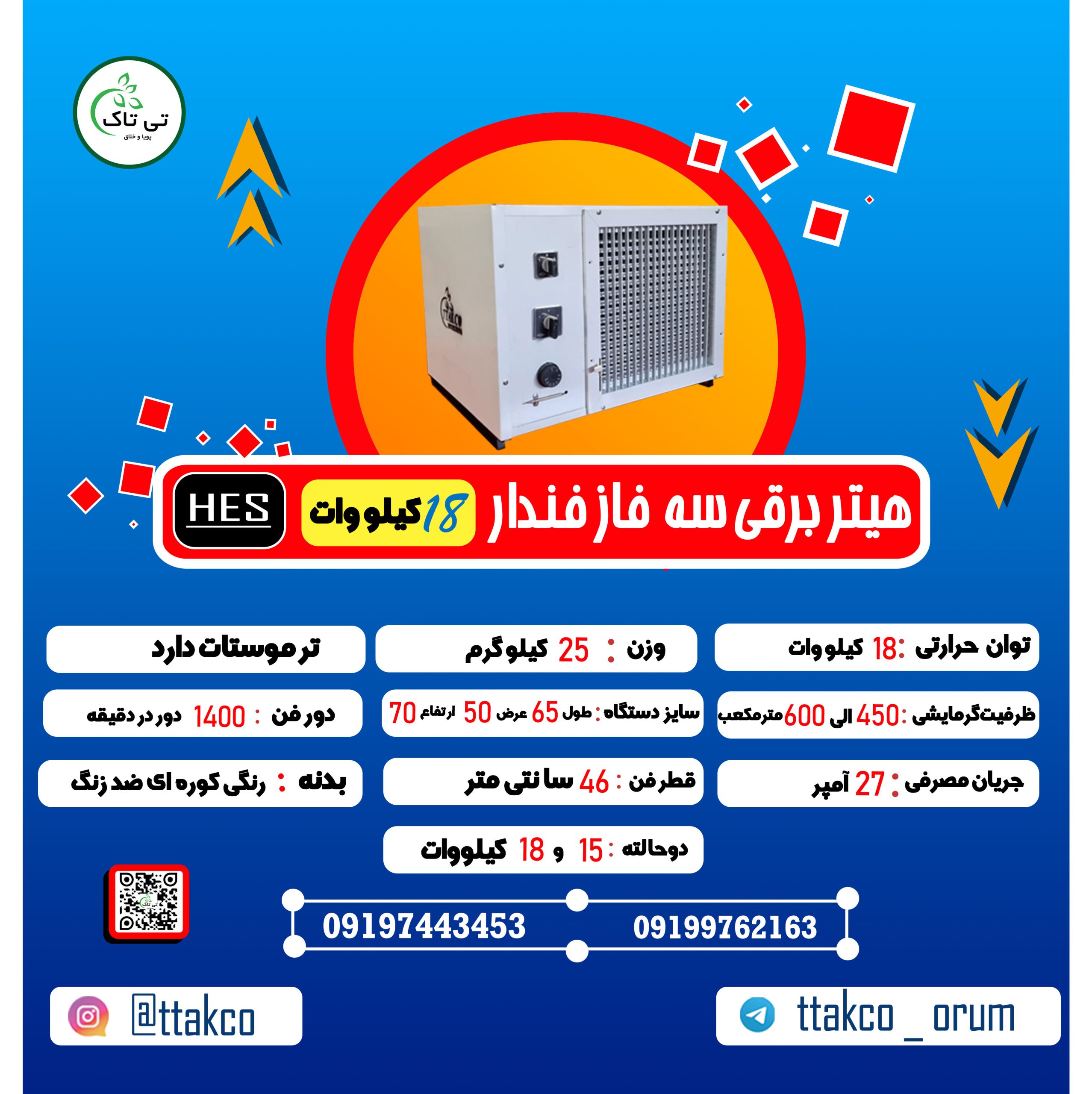 مشخصات فنی هیتر برقی ایستاده 18 کیلووات
