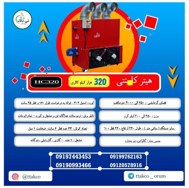 اجزای هیتر گلخانه 320 هزار تی تاک